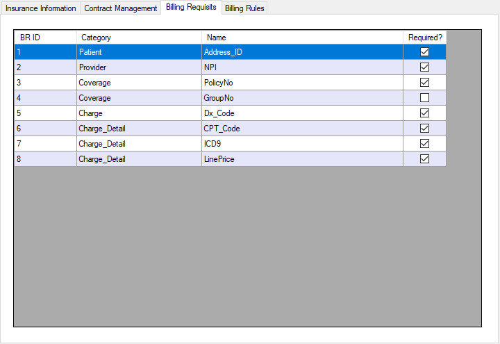 Select this tab to modify the billing prerequisites for the selected payer in the routine. The billing prerequisites are not activated when a new payer is added in to the system. You need to access the payer in the 'Edit' mode and save it, to activate the billing prerequisites.