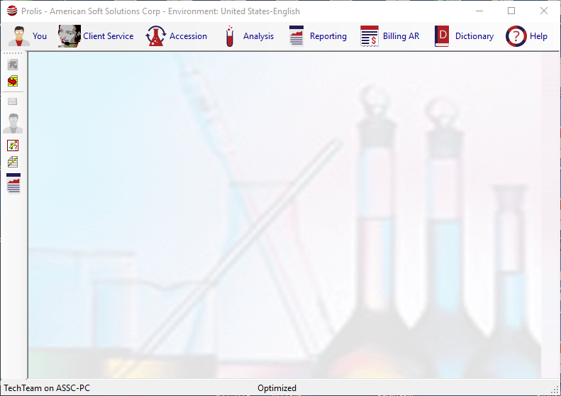 The user name and the PC name will appear on the status bar alog with activating the entire menu based on the user's permission assigned by the system administrator.