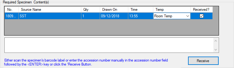 Select the Received-check box in the grid if specimens received.